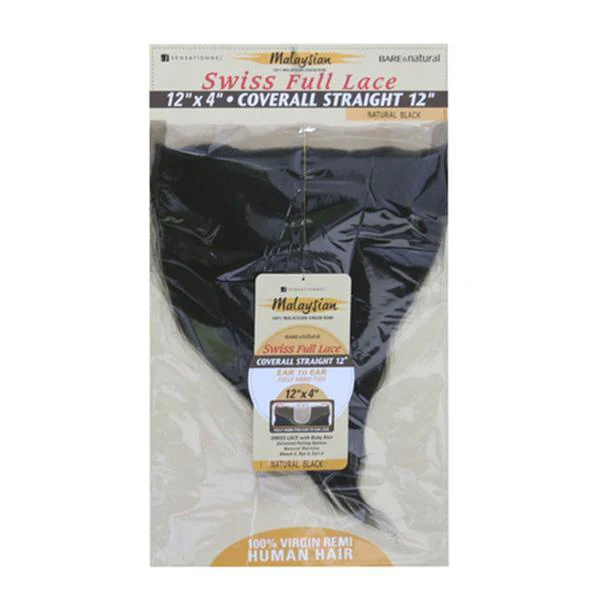 Sensationnel Bare & Natural Frontal Lace Closure Malaysian Virgin Remi - 12x4 Swiss Lace CLOSURE Straight 12" - Clearance
